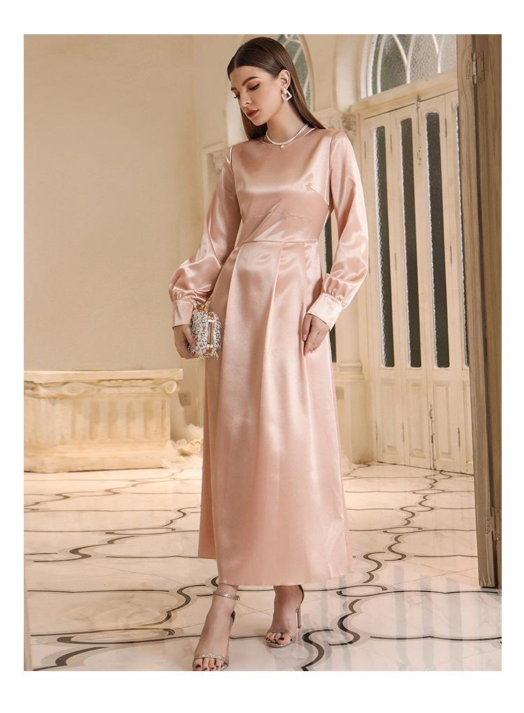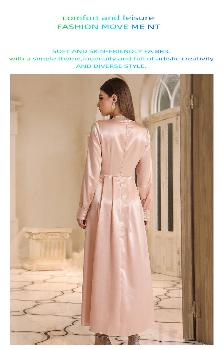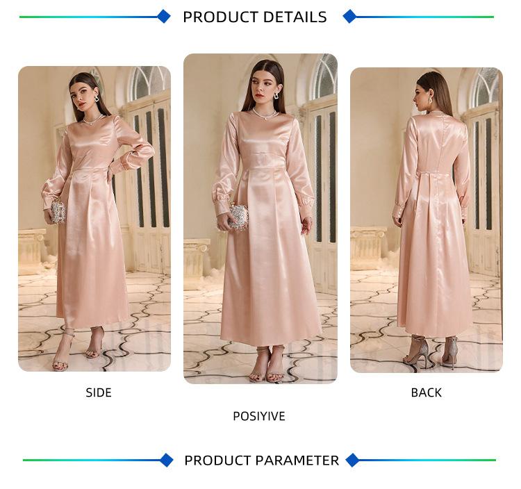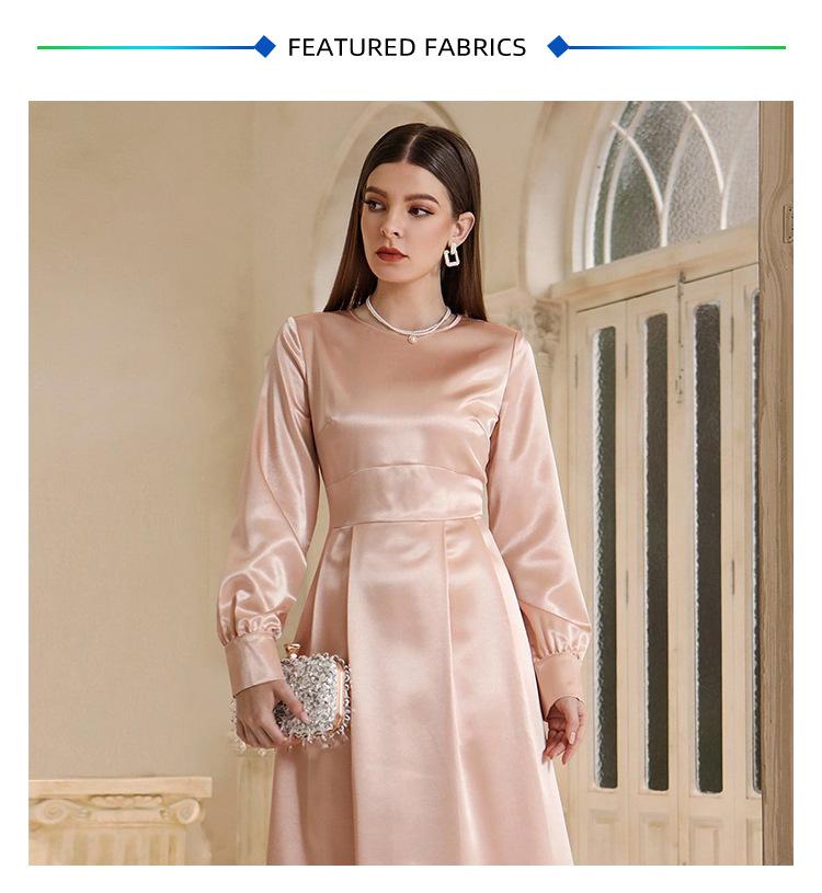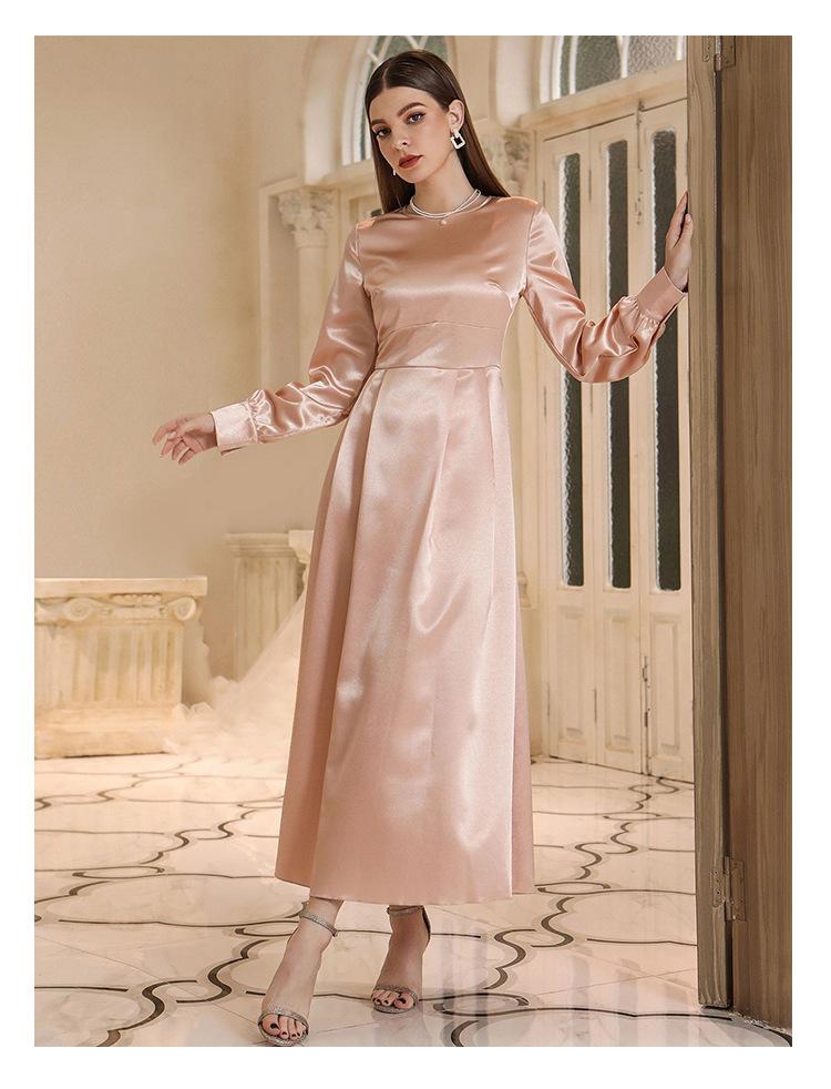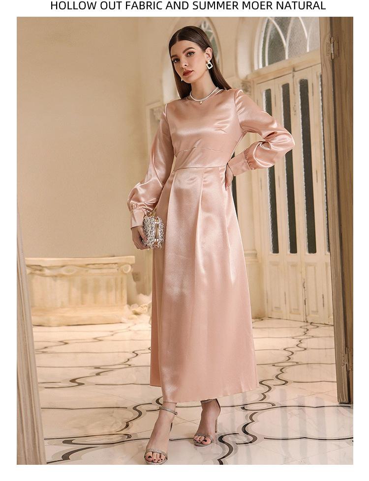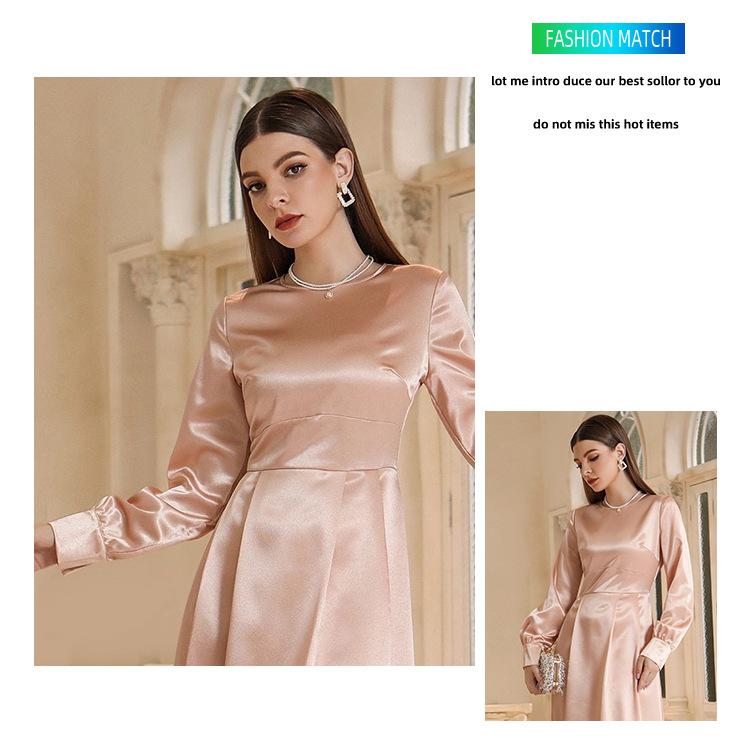 Muslim Autumn Women'S High Waist Dress with Headscarf