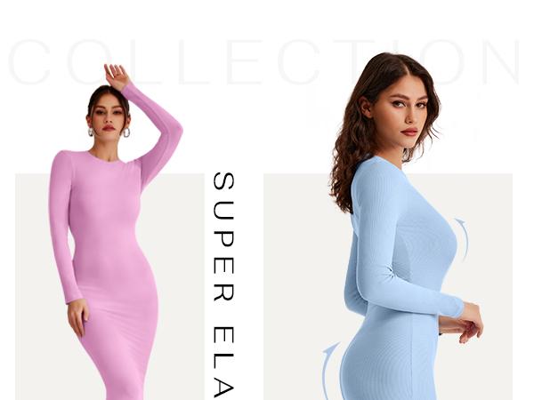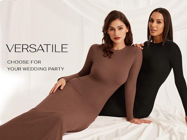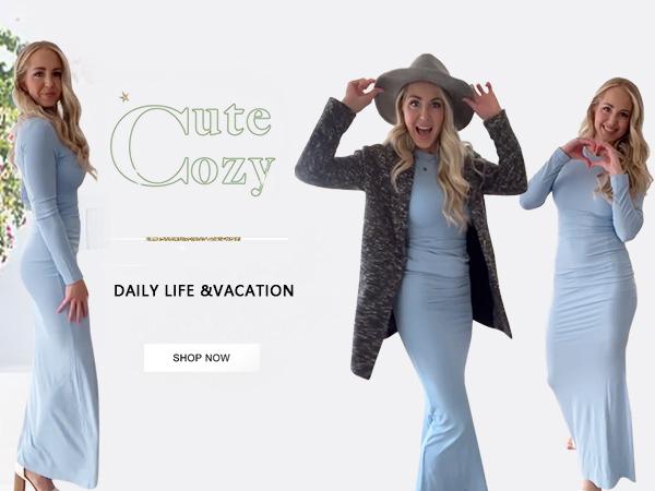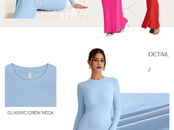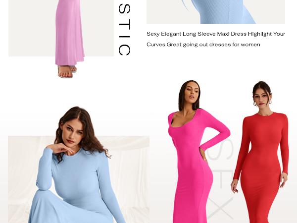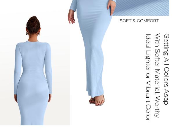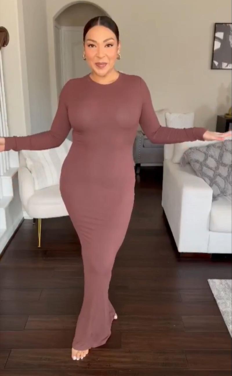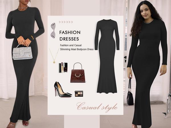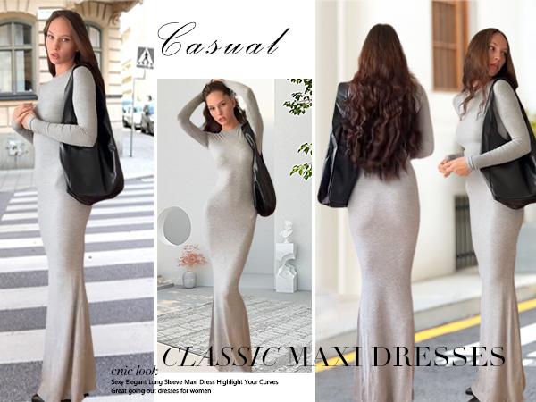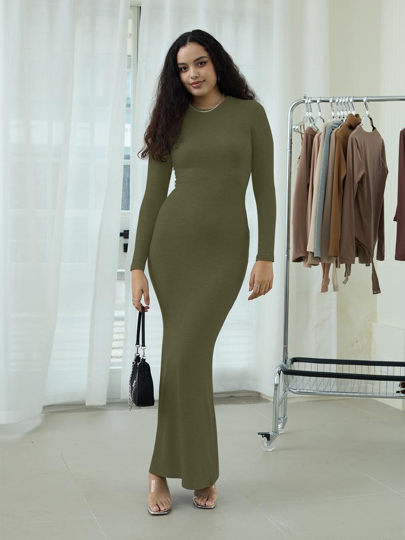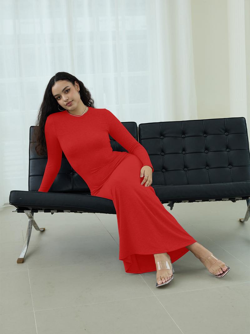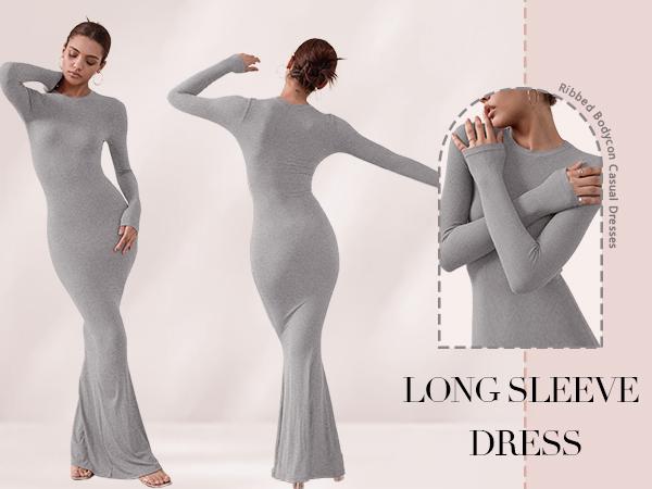 REORIA Women'S Sexy Crew Neck Lounge Long Dress with Fishtail Hem - Machine Washable, Summer Elegant Long Sleeve Ribbed Bodycon Maxi Dresses Spring Layer Casual Womenswear, Elegant & Versatile for Any Occasion